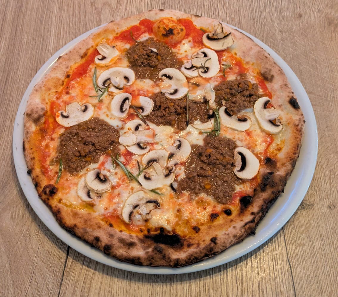 Pomodoro, Mozzarella, Ragù di Capriolo, Funghi, Rosmarino